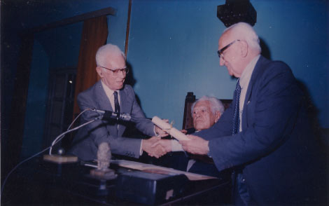 Recebendo Prêmio da ABL pelas mãos de Barbosa Lima Sobrinho